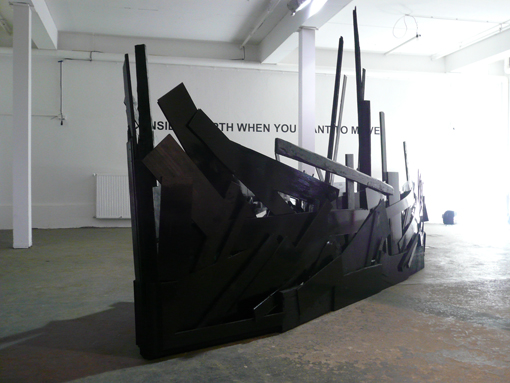 Diese Überlegungen verarbeitet die Künstlerin in der skulpturalen Installation THERE WILL BE A SHIP