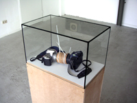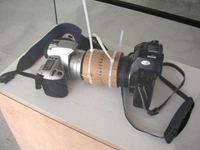 | morten steen hebsgaard, kissphotography, 2 kameras, pappe, kabelbinder 2006 - green bag/frog, kissphotographie 2006 - white paper/swan, kissphotographie 2006 - |