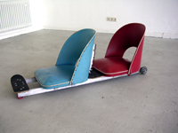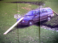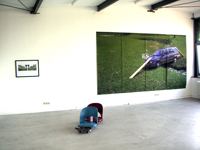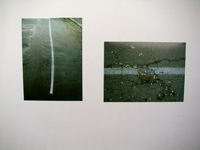 | oliver heinzenberger, brücke über bach. kein tüv., print, 2006 - selbstgemachter mittelstreifen, verschiedene materialien, 2 prints, 2006 |
