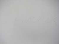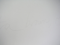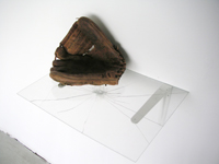 | broken glass shelf, 2006 - dakota brown, pencil text on wall, 2006 |