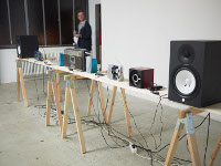 die zwanzigminütige soundinstallation beinhaltet zwei stille parts, während derer die geräusche im raum und seine besucher hörbar werden und so zum teil der arbeit avancieren.