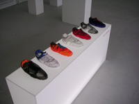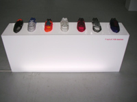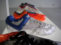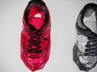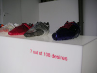 | he ryoung lee - 7 out of 108 desires - 7 handvernähte schuhe aus folie, plexiglas mit neonröhre - objekt - 2000-2001 |