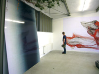 | eno henze - der libertin (it’s all over now), computerzeichnung, 165 a3 farblaser-prints auf wand, 6x2,8m, 2007, grimm, computerzeichnung, lamdaprint auf aludibond, 2006 |
