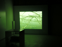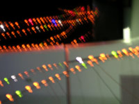 | roseline rannoch - die amerikanische nacht: san fernando valley - installation - leuchtdioden, verdunkeltes plexiglas, aluminiumstäbe und -stahlrahmen, kabel, transistoren - 2003 |